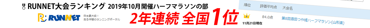 RUNNET(ランネット)の大会ランキング -2019年10月開催ハーフマラソンの部2年連続全国第1位!–2019年ハーフマラソンの部全国第8位!!-