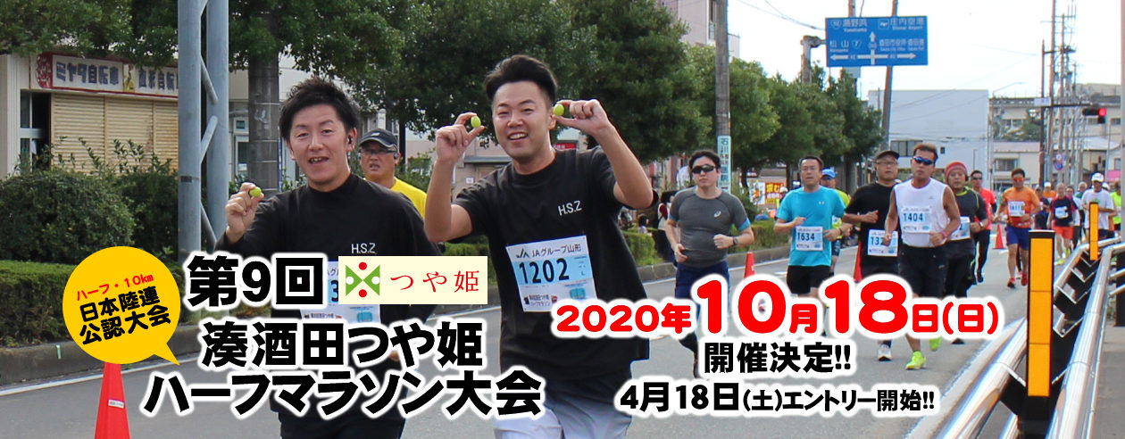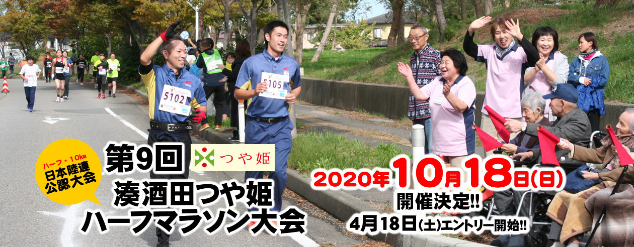 酒田つや姫ハーフマラソン大会は2019年10月20日(日)開催します。4月13日(土)エントリー開始!!